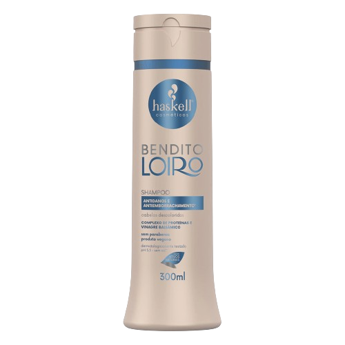 nos cabelos molhados, aplique o shampoo, massageando o couro cabeludo em suaves movimentos circulares. Enxágue bem. Se necessário, repita a aplicação. Potencialize os resultados utilizando toda a linha Bendito Loiro.